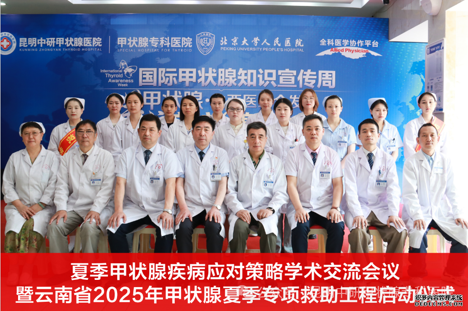 6月14日上午,夏季甲状腺疾病应对策略学术交流会议暨云南省2025年甲状腺夏季专项救助工程启动仪式在昆明中研甲状腺医院成功举行。本次活动汇聚了北京、云南甲状腺领域知名专家,通过学术分享、课题探讨、联合会会诊、专项援助政策发布等形式,为甲状腺疾病患者提供切实帮助,推动甲状腺健康知识的普及,展现了医疗公益的力量。
