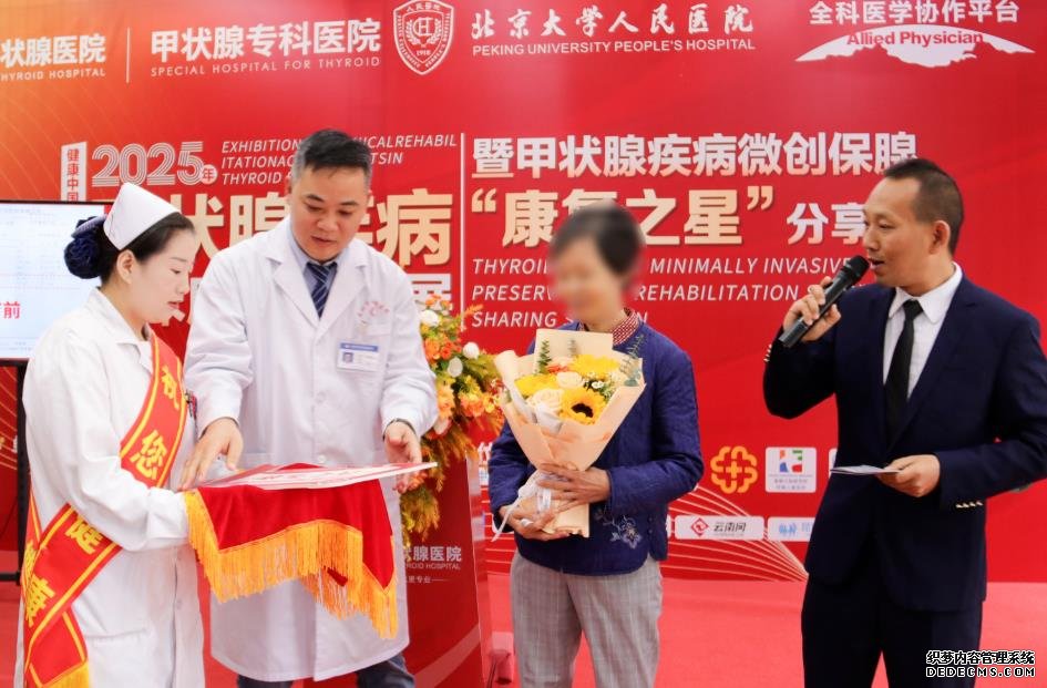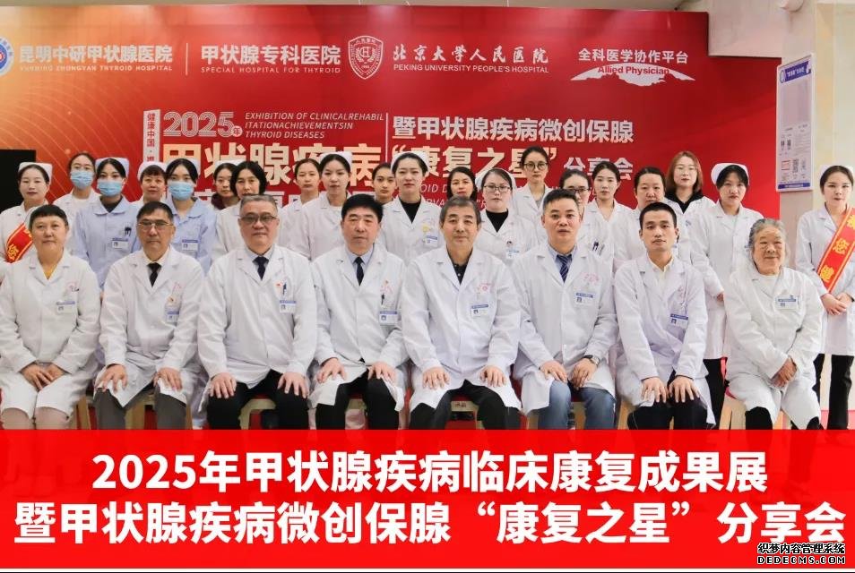 10月1日,在祖国76周年华诞的喜庆氛围中,“健康中国,携手护‘甲’同行——2025年甲状腺疾病临床康复成果展暨甲状腺疾病微创保腺‘康复之星’分享会”在昆明隆重举行,来自北京、云南两地数十位专家、学者出席了活动现场。